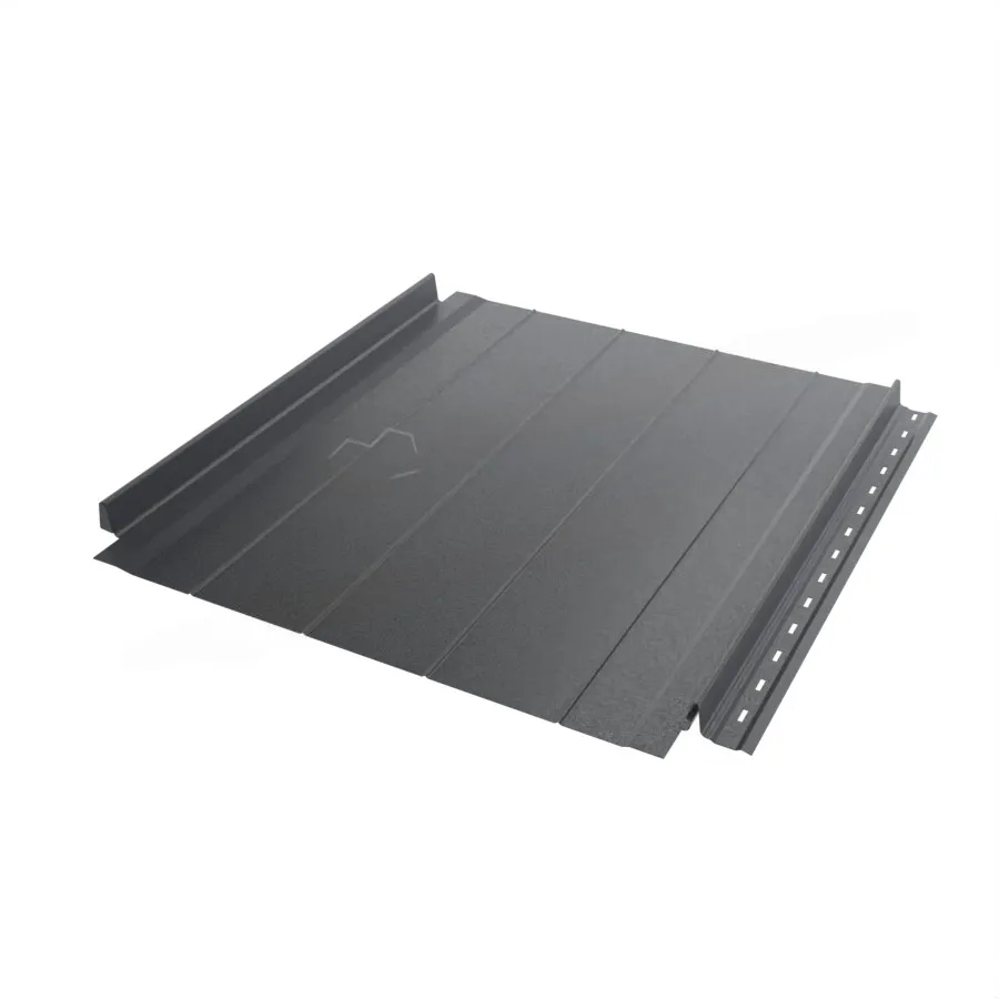 Заглушка замка и карнизный загиб фальцевых панелей от «Металл Профиль» вырублены заводским методом. Это значительно облегчит и ускорит их установку: не потребуется самостоятельно резать материал. Кроме того, чтобы соединить панели, не потребуется специальное оборудование — удобные замки защёлкиваются одним нажатием.