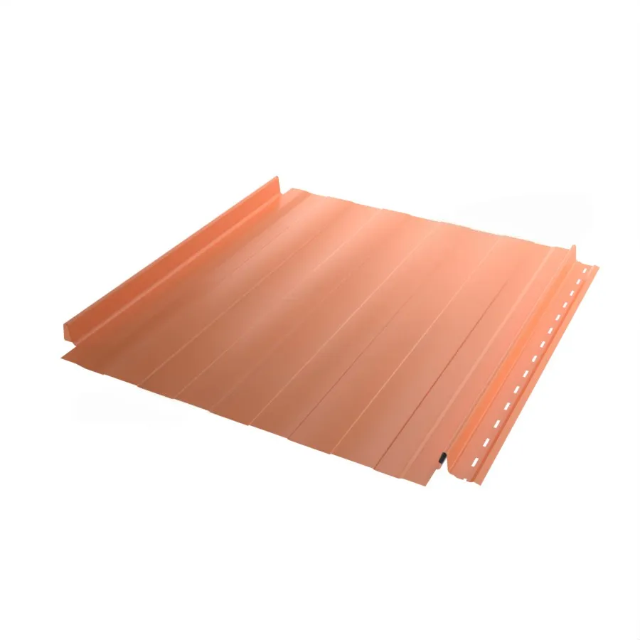 Заглушка замка и карнизный загиб фальцевых панелей от «Металл Профиль» вырублены заводским методом. Это значительно облегчит и ускорит их установку: не потребуется самостоятельно резать материал. Кроме того, чтобы соединить панели, не потребуется специальное оборудование — удобные замки защёлкиваются одним нажатием.