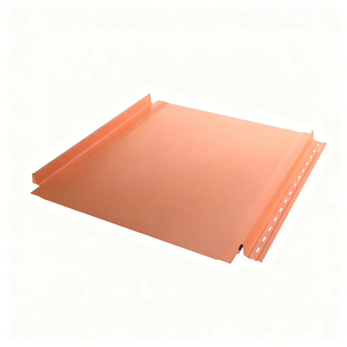 Заглушка замка и карнизный загиб фальцевых панелей от «Металл Профиль» вырублены заводским методом. Это значительно облегчит и ускорит их установку: не потребуется самостоятельно резать материал. Кроме того, чтобы соединить панели, не потребуется специальное оборудование — удобные замки защёлкиваются одним нажатием.