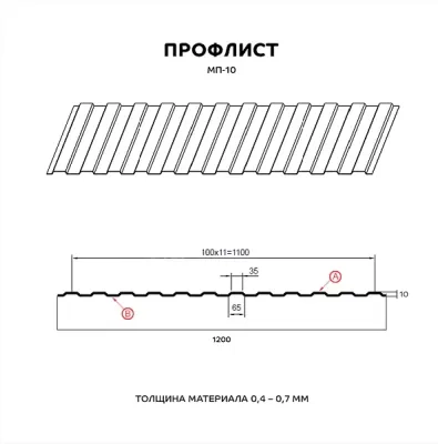 Профлист имеет рёбра жёсткости, которые нужны для сохранения формы и препятствия механическому повреждению.