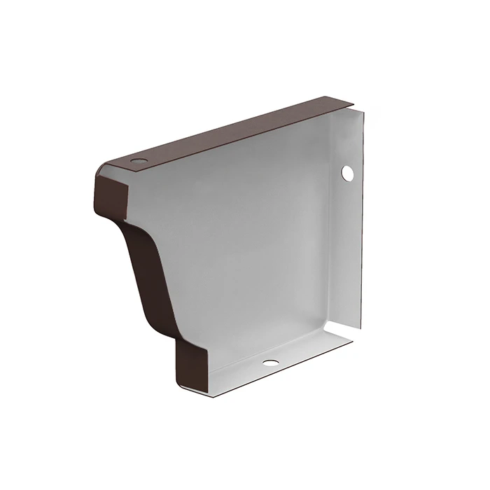 Заглушка желоба левая 120x86 мм Металл Профиль Бюджет Полиэстер 0,5 — закрывает торец желоба, предотвращая вытекание воды. Коллекция Бюджет — тонкая сталь с цинковым или полиэстеровым покрытием, гарантия 1–10 лет.