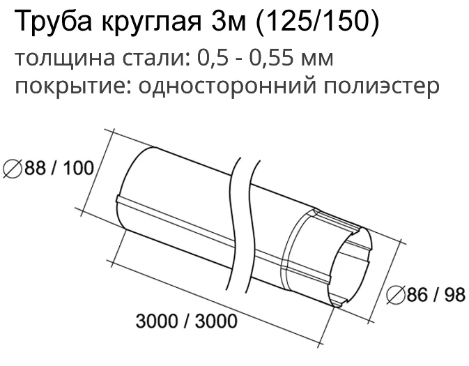 Является одним из основных конструктивных элементов кровельного водостока. Организует вертикальный сток дождевой воды. Внешний фальцевый шов обеспечивает ровную внутреннюю поверхность трубы, что препятствует замусориванию и заторам.