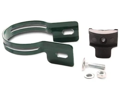- Скобы — основной тип крепления секции к столбу. Представлены варианты с болтами разной длины (25–130 мм) под разную толщину стенки столба.