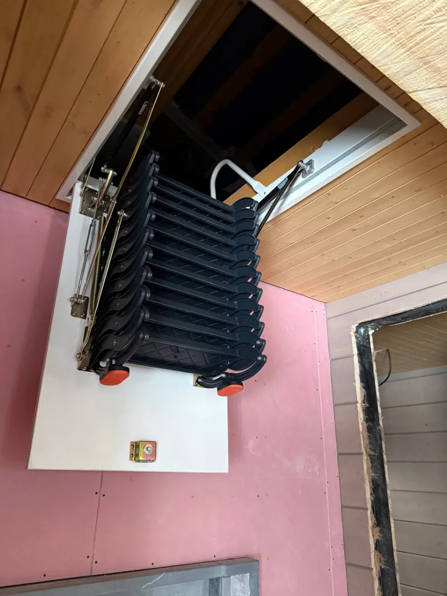 - Монтаж чердачной лестницы с утеплением.