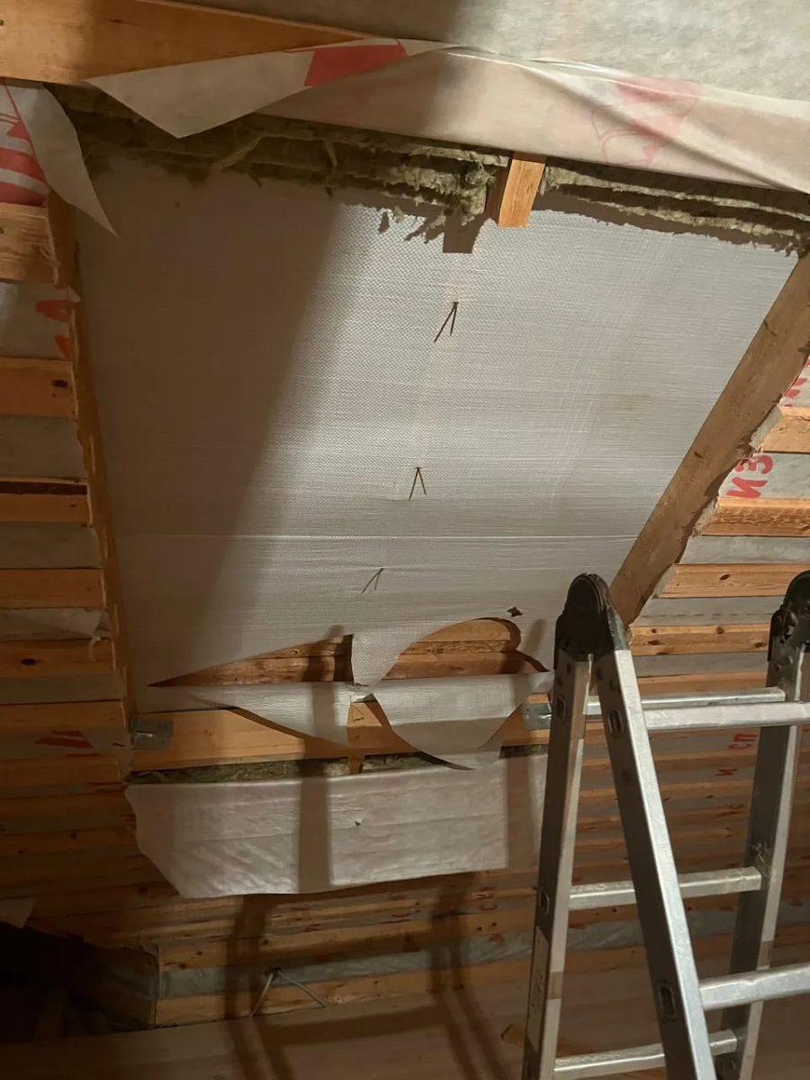 - Монтаж пароизоляционного фартука с проклейкой.