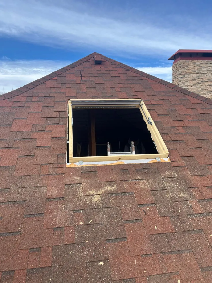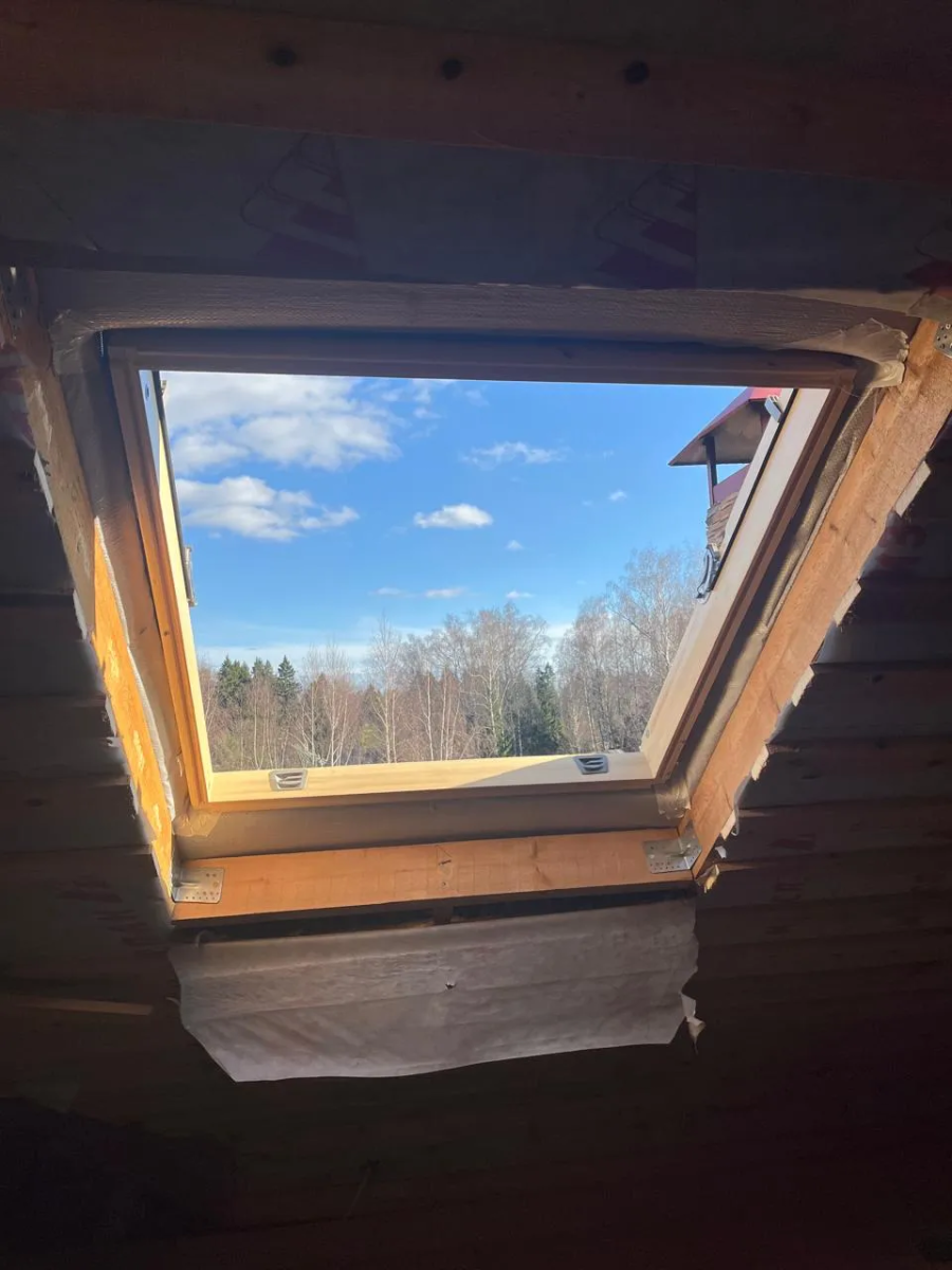 - Монтаж мансардного окна с подведением кровельного покрытия.
